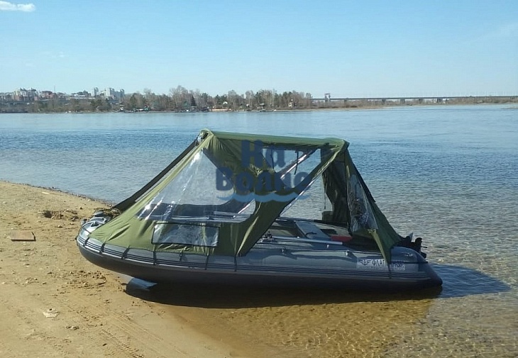 Ходовой тент позволяющий открывать любую сторону лодки: нос, корму или борта/ При этом остальные части тента остаются на каркасе для защиты от ветра или солнца